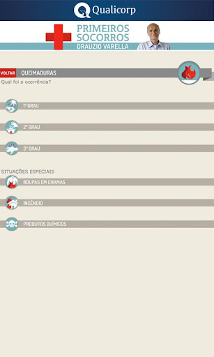 Este aplicativo, com conteúdo desenvolvido e supervisionado pelo Dr. Drauzio Varella, oferece orientações básicas sobre primeiros socorros, mas não substitui o atendimento profissional.